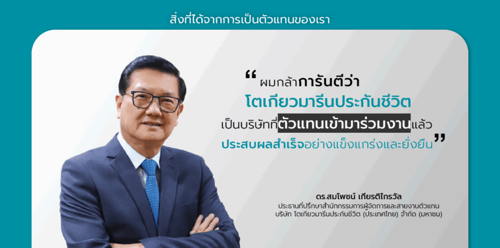 “ผมกล้าการันตีว่า โตเกียวมารีนประกันชีวิต เป็นบริษัทที่ตัวแทนเข้ามาร่วมงานแล้วประสบผลสำเร็จอย่างแข็งแกร่งและยั่งยืน”
